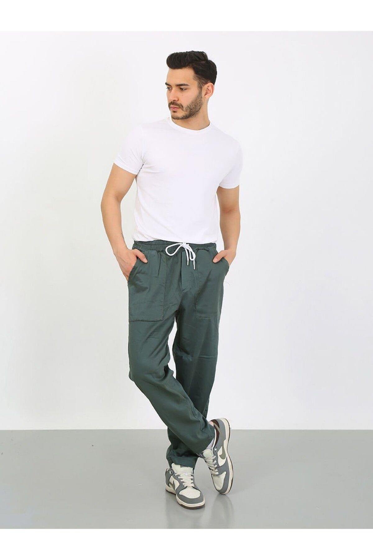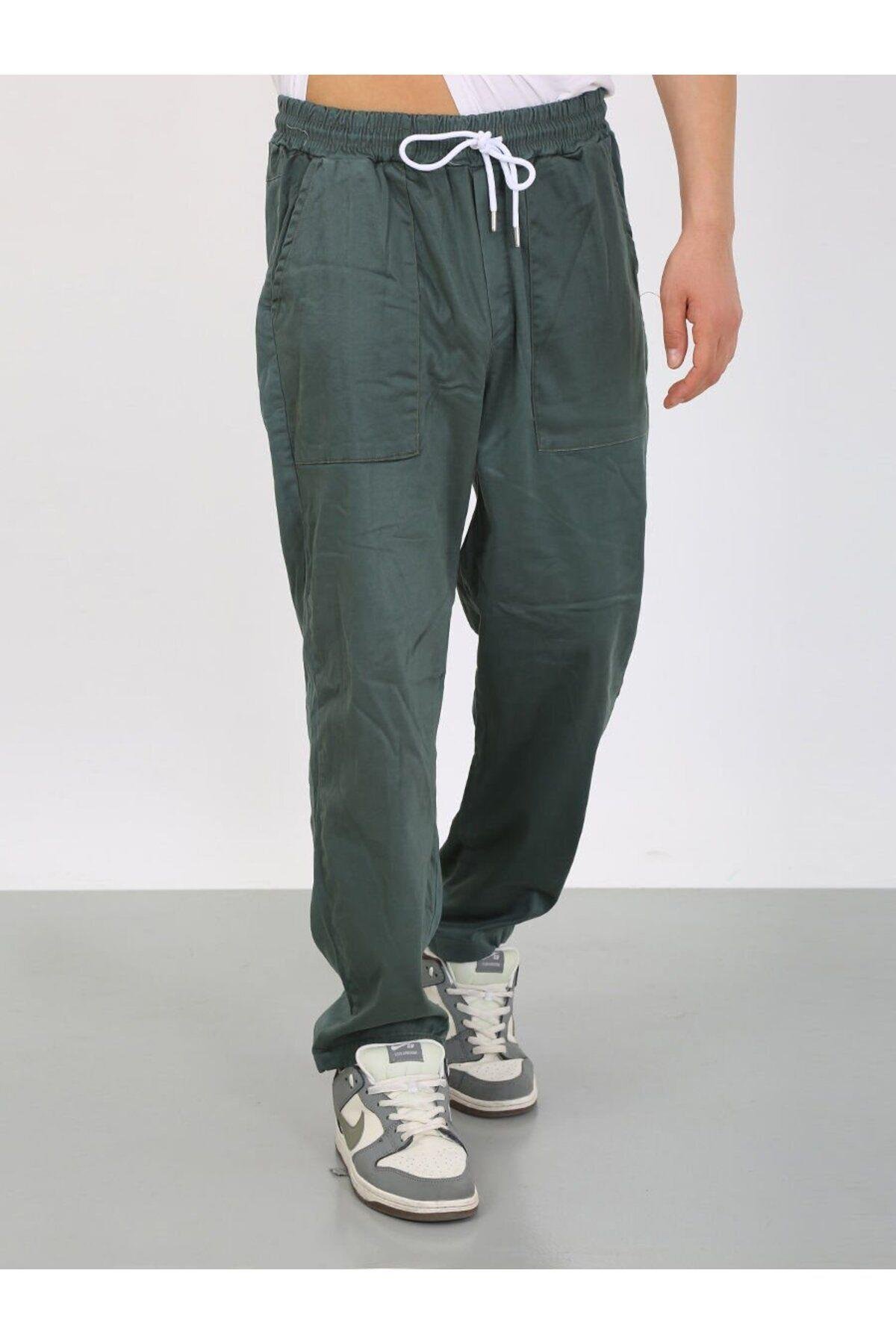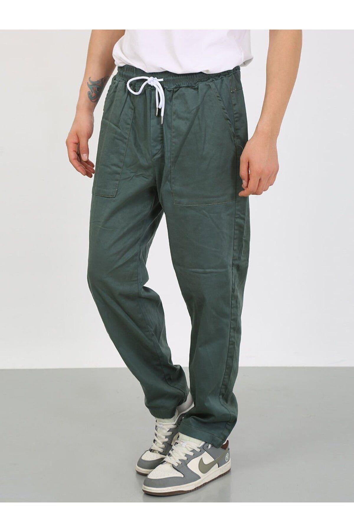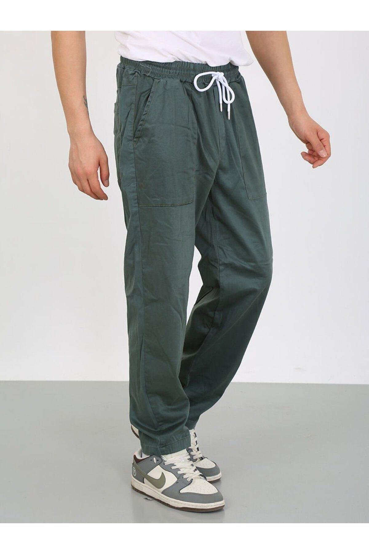 Koyu Yeşil Oversize Premium Sewing Cepli Yürüyüş Pantolonu-Koyu Yeşil - L (2413_13132)