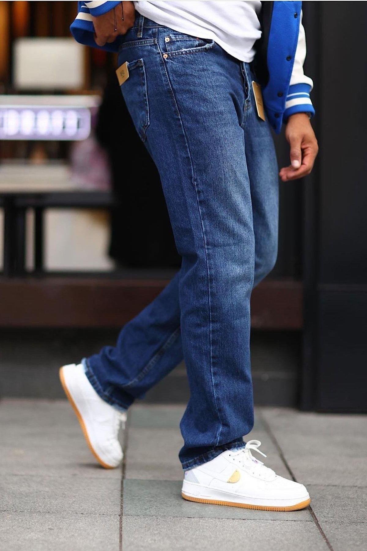 Lacivert Taşlamalı Bol Kalıp Kot Pantolon