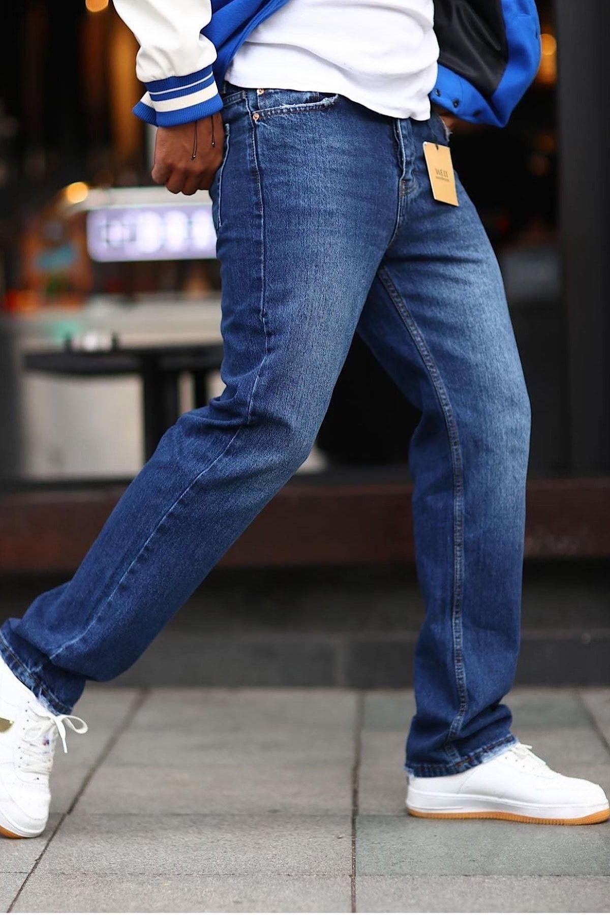 Orta kalınlıkta denim kumaştan üretilmiş olup, tüm yaş gruplarına uygun rahatlık sunar.; Düz desen tasarımı ve lacivert rengiyle klasik ve zamansız bir stil oluşturur.; Yıpranmış detaylarıyla vintage havayı günümüze taşıyan bu pantolon, casual ortamlarda şıklığınızı tamamlar.; Bol paça kesimi ile hareket özgürlüğünüzü kısıtlamazken, rahat bir oturuş sağlar.; Normal bel yüksekliği sayesinde gün boyu konforlu bir kullanım sunar.; Beş cepli tasarım, küçük eşyalarınız için pratik saklama alanları sağlar.; Denim kumaş tipi dayanıklılıkla birlikte uzun süreli kullanım vaat eder.;